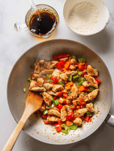 Step 3: Add the chicken and cook until it’s no longer pink—about 8 minutes, stirring often.