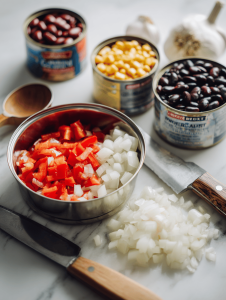 Step 1: Start by gathering all your ingredients. Chop the onions, garlic, and herbs. Have your cheeses grated and ready to go.