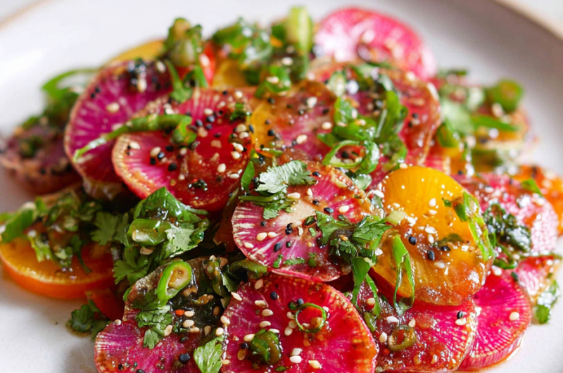 - Carrots (optional): I toss in thin strips for sweetness and color, which contrast nicely with the radish’s peppery sharpness. If you don’t have carrots, a handful of snap peas can add crunch and brightness.