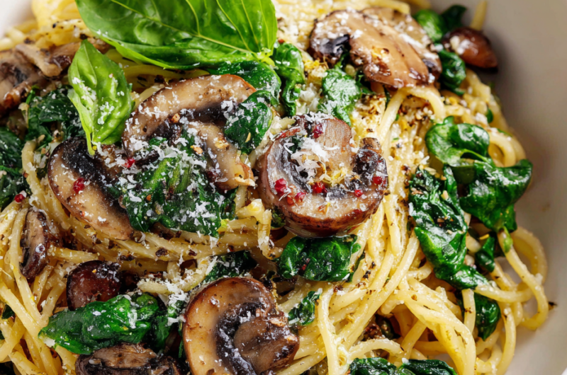 This dish was born out of a chilly evening when I had a handful of mushrooms and a bunch of fresh spinach that needed using up fast. I remember the way those earthy mushrooms started to release their smoky juice as they hit the hot pan, filling the kitchen with a scent that made everyone gather around. The spinach wilted quickly, turning that vibrant green into a tender, slightly wilted mass that clung to the pasta in a way that felt both familiar and unexpectedly rich. It’s a simple meal, but one that always brings me back to those quiet, cozy nights when good flavors can turn a regular dinner into a little celebration.
