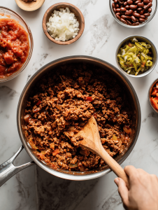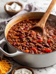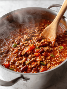 Step 7: Simmer uncovered for 25-30 minutes, stirring occasionally. The chili should thicken slightly and smell rich.