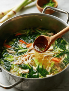 • Chicken (preferably bone-in): Gives rich flavor and collagen, making the broth silky.