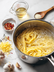 1. Bring a large pot of salted water to a rolling boil, tasting it to ensure it’s salty like the sea. Add the pasta and cook until just al dente, about 8-10 minutes, stirring occasionally to prevent sticking.