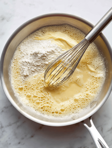 3. Add the flour to the melted butter, whisking constantly until the mixture is smooth and pale, about 1 minute. This creates a roux that thickens the sauce.