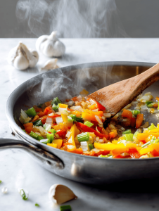 • Skillet: Sautés the aromatics and cooks the filling ingredients.