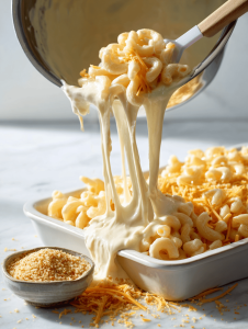 • Pasta: Creamy, starchy foundation, varies in shape. Penne or elbows hold sauce well.