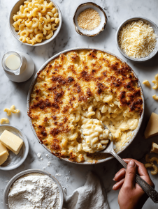• Baking dish: Bake the assembled mac and cheese until bubbling and crispy.