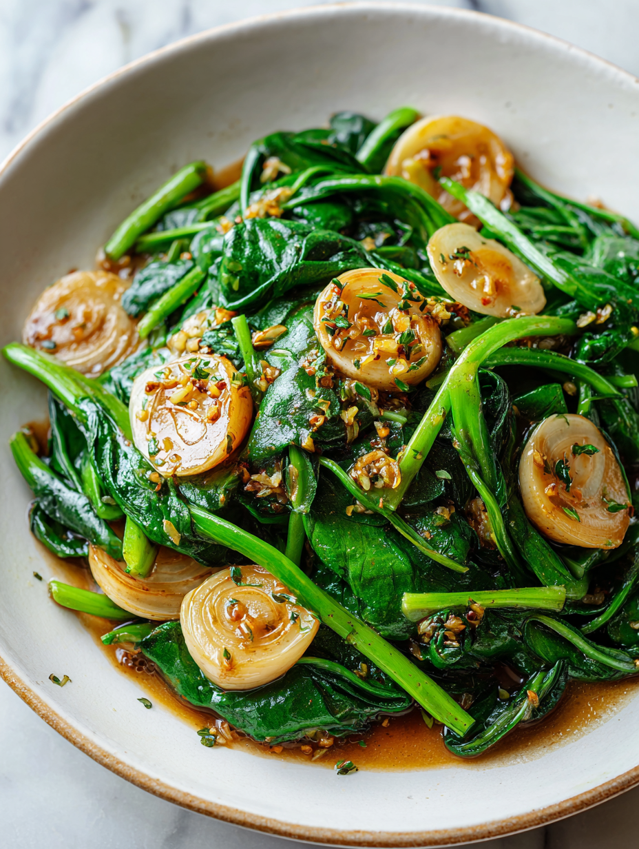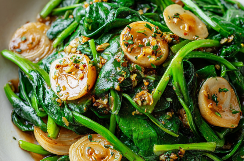 - Rest for 1 minute to allow flavors to meld. Serve immediately while greens are vibrant and fragrant, with a slight smoky aroma from garlic.