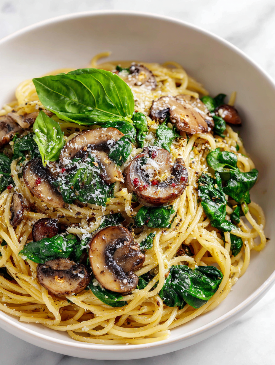 There’s something about mushrooms and spinach that really deepens as they cook together. It’s like the earthy, umami-rich aroma starts to fill the kitchen, and suddenly the simple pasta on the stove feels more like a hearty, satisfying meal. I love how those mushrooms release their smoky juice and the spinach wilts into a tender, slightly wilted mass that clings to every strand of pasta.